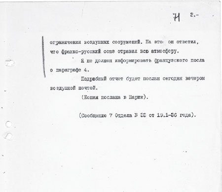Рис. 4. Сообщение № 33 7-го отдела МИД Великобритании о переговорах с Гитлером о воздушном пакте (перевод с английского). 13.12.1935