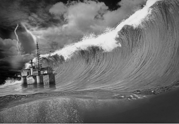 Волна-убийца обрушивается на нефтяную платформу