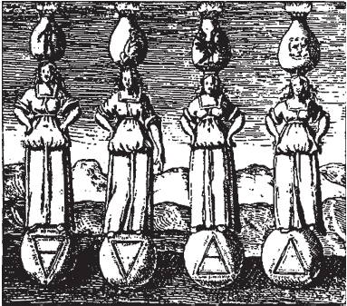 • В алхимии два равносторонних треугольника с вершинами, направленными вверх и вниз, обозначали, соответственно, огонь и воду. Взятые вместе, они символизировали единство противоположностей: сущность и субстанцию, стабильность и изменчивость, дух и материю и т. д.