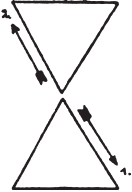 Таким образом, у нас есть «возвышающийся» треугольник – олицетворение солнца, возвышенного, божественного, фаллического, и треугольник «ниспадающий» – знак луны, земного, физического, психологического, женственного. Два разных треугольника, соединенных вместе, дают в результате космическую гармонию, гармонию сексуальную. В оккультизме этот символ именуется «Щитом Давида» или «Печатью Соломона» (подробнее читайте в параграфе «Гексаграмма»). Два треугольника, которые соприкасаются вершинами, означают цикличность существования всего живого, начало и конец, жизнь и смерть, единство противоположностей.