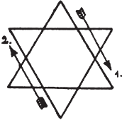 XXVI. Магическим орудием начертить на востоке Гексаграмму Огня, произнеся: «АРАРИТА».