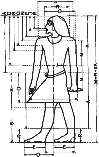 Древние египтяне придавали большое значение форме квадрата в качестве основы для канонов искусства. Древнеегипетский канон опирался на восемь пропорциональных величин, полученных в результате деления сторон квадрата по золотому сечению.