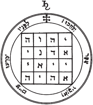 В середине таблицы вычерчивается шестиугольник, внутри которого изображается имя и подпись планеты или главного духа, под управлением которого состоит вызываемый добрый дух. Вокруг шестиугольника помещается столько пентаграмм, сколько духов мы вызываем. Если призываем только одного, то все же не следует изображать менее четырех пятиугольников, где будет вписано имя духа или духов с подписями.