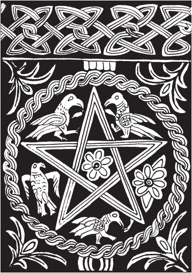 Пентаграмма является одной из самых важных фигур-символов в ведьмовстве. В колдовских обрядах пентакль – это круглый диск из глины, воска, железа, серебра, олова или меди, на котором выгравированы пентаграмма и другие магические символы. Этот символ используют, чтобы притянуть энергии элементов, сконцентрировать магический круг или защититься. В некоторых ритуалах верховный жрец или жрица может сама принять форму пентаграммы, расставив ноги и вытянув руки в разные стороны. Способы рисования пентаграммы различаются в зависимости от цели обряда: пентакли, вызывающие духов, отличаются от пентаклей, которые их изгоняют.