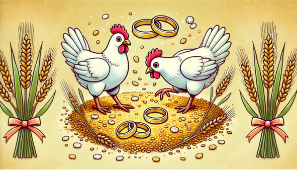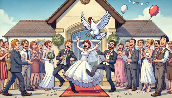 Наконец церемония началась, и всё вроде бы шло по плану, пока дядя Вася не начал громко комментировать происходящее, добавляя от себя «мудрые» советы молодожёнам. Когда все стали обмениваться кольцами, Вася прокомментировал: