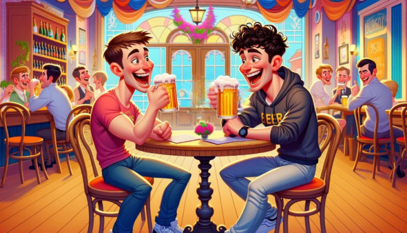 Ваня и Костя сидели в маленькой уютной кофейне, утопающей в золотистых осенних листьях. На столе перед каждым стояли уже по две опустошенных кружки янтарного пенистого пива, а между ними лежала стопка свадебных журналов. Костя лениво листал один из них, глядя на картинки роскошных залов, блестящих платьев и сверкающих люстр. Ваня, напротив, был серьёзным и задумчивым, прикидывая в голове расходы на предстоящую свадьбу, под свой ограниченный бюджет.