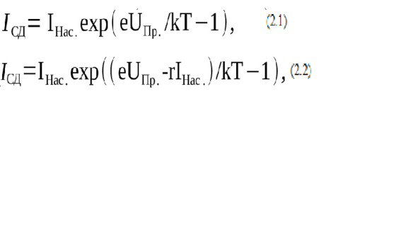 где: IНас., IСД – токи насыщения обратной ВАХ и текущего в СД;