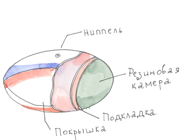 В качестве камеры для мячей производители использовали свиные мочевые пузыри. Это отличало их от более древних и тяжелых снарядов, которые набивались соломой и перьями. Форма первых изделий напоминала сливу.