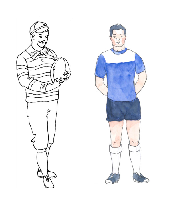 Форма впервые появилась еще в школе Регби. В 1839 году школьная команда обзавелась собственной экипировкой, чтобы отличать своих от соперников. Первый комплект формы включал в себя фланелевые брюки, рубашку и кепку.
