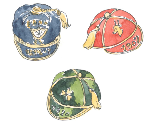 Первые упоминания о кепках датированы 1839 годом. Во время визита королевы-консорт (супруги короля) Соединенного Королевства Великобритании и Ирландии Аделаиды Саксен-Мейнингенской учащиеся школы Регби маршировали перед гостьей в четырехугольных бархатно-малиновых кепках с золотыми кисточками. Так королева узнала о предстоящем матче по регби-футболу. Юноши сохранили свои головные уборы. Это был первый зарегистрированный случай, когда специально для игры в регби надевалась форма.
