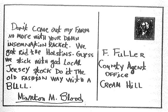 ‘Goddamnit, the Holsteins are good-natured cows, better than them little Jerseys you got. They give damn near twice as much milk as any Jersey.’ He tumbled into the relief of the old argument.