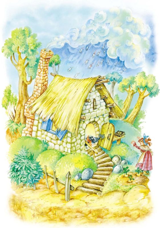 – Должен быть дождь! – каркал он сердито. – А что делаешь ты? В первый раз у тебя посыпались с неба белые мыши! Во второй раз – лягушки! В третий – еловые шишки! Интересно, что посыплется в четвёртый раз? Получится ли у тебя наконец настоящий дождь?!