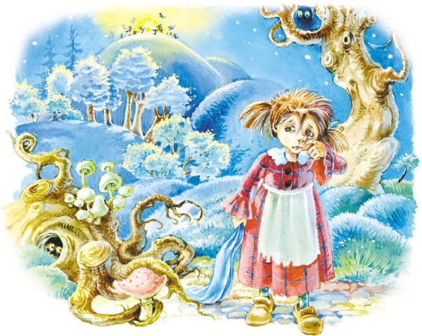 Зато Маленькой Бабе-Яге пришлось туго: то и дело спотыкалась она о корни деревьев и цеплялась юбкой за ежевику.