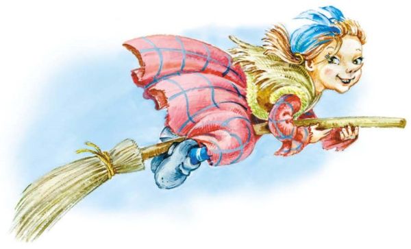 – Балуй, нечистый дух! – покрикивала она на метлу. – Балуй! Скоро ты устанешь и наберёшься разума! Ху́сса-а-э́хх!..