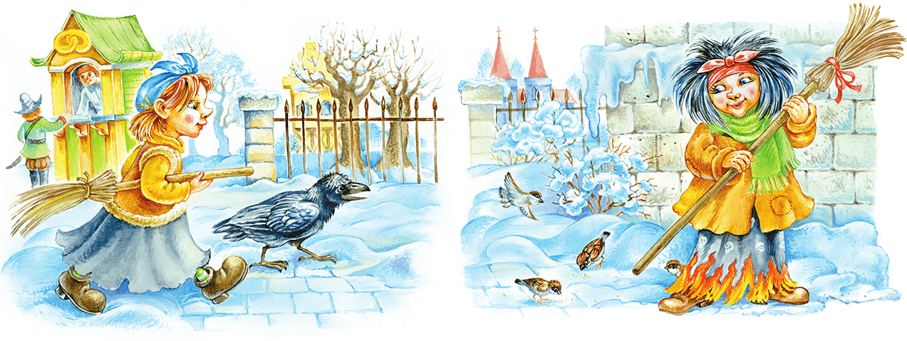 – Принимайтесь-ка спокойно за дело, – ободрила малышей Маленькая Баба-Яга. – И не бойтесь! Если они ещё раз попробуют вам помешать, я им задам. Можете на меня положиться.