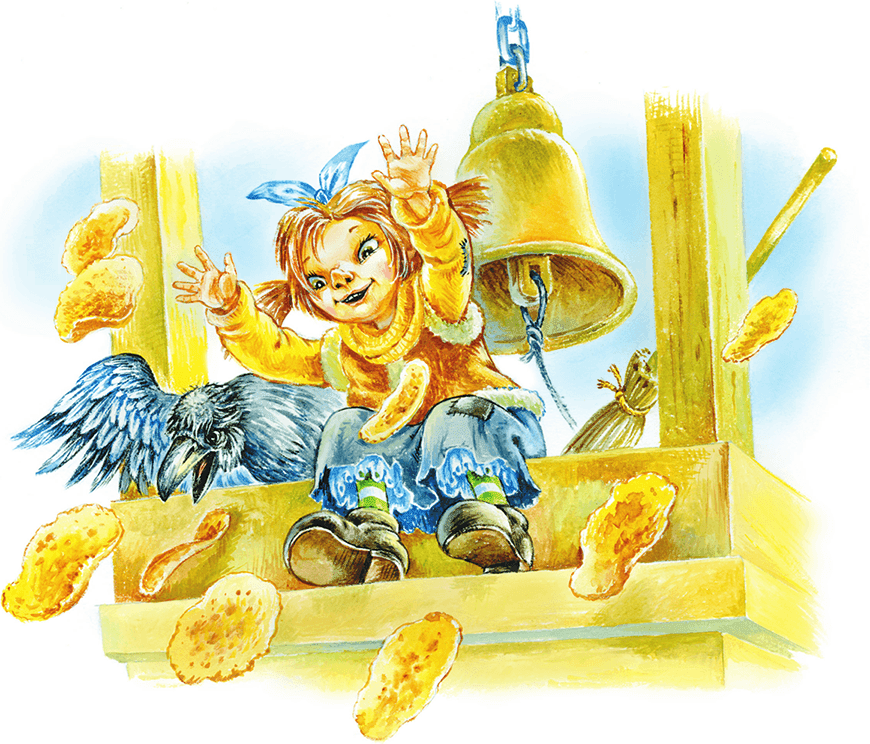 А Маленькая Баба-Яга, смеясь, кружилась над базарной площадью с вороном на правом плече. Потом она взлетела на крышу дома и помахала оттуда ручкой.