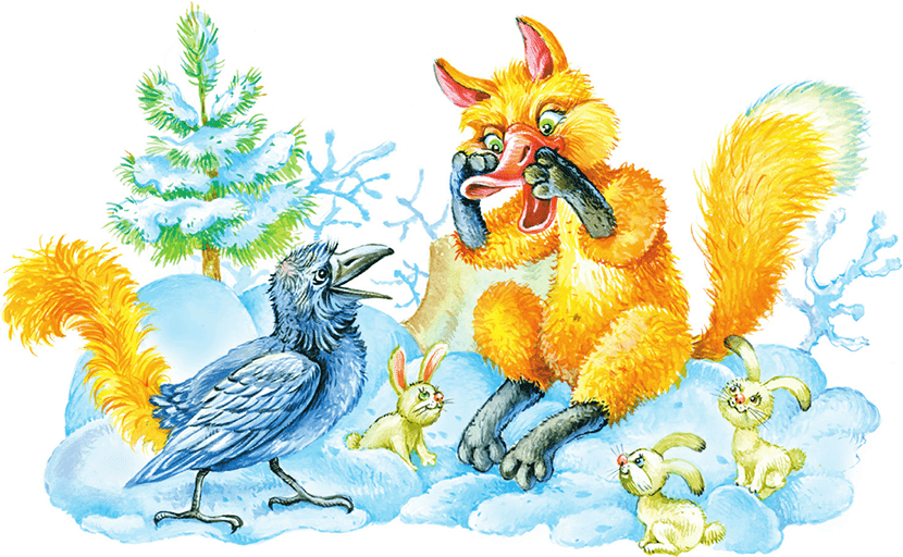 Звери с удивлением оглянулись… и тут все увидели лису, выскользнувшую из-за дерева.