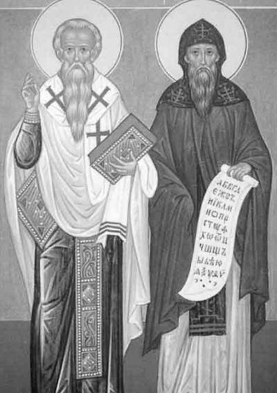 Кирилл и Мефодий. «Просветители» – и вдохновители геноцида… Фреска в Зографском монастыре на Афоне