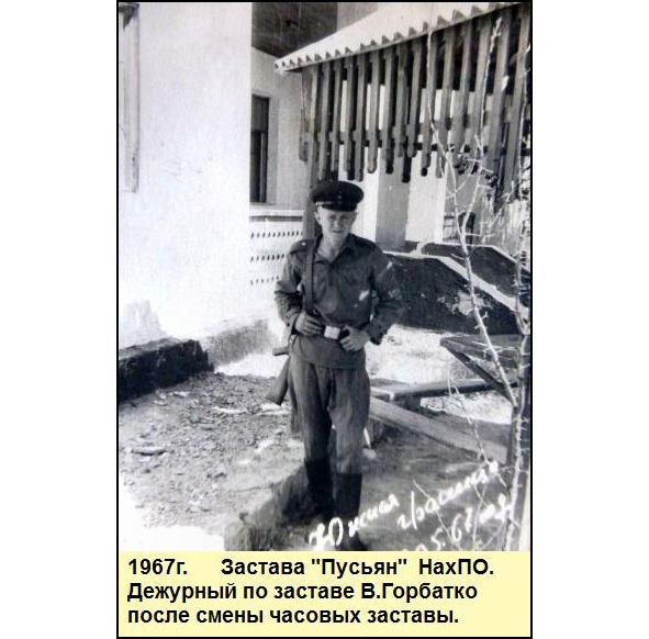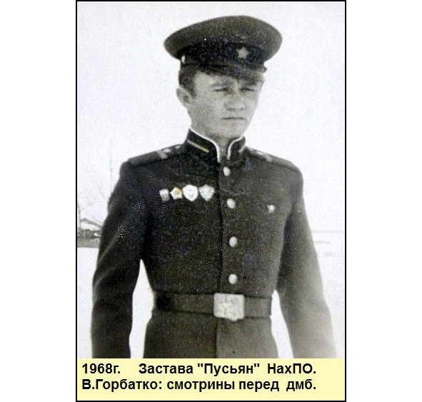 Так пролетели три года и три месяца службы. Ближе к увольнению мы готовили свою форму одежды, всё подогнали, прошивали погончики, сапоги начищали до невероятного блеска. При убытии с заставы в отряд проводов, как таковых, не было. 30 сентября 1968 года с подъёма я занимался тем, что в помещении заставы «железнил» цементом полы. Ко мне подошёл начальник заставы Лубик В. И. и говорит: «Собирайся, Горбатко», а когда я спросил: «Куда?», то начальник заставы пояснил, что вечером я должен поездом выехать в отряд. Вот и весь ритуал.