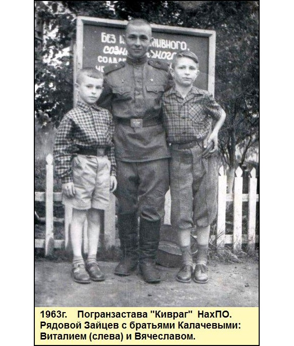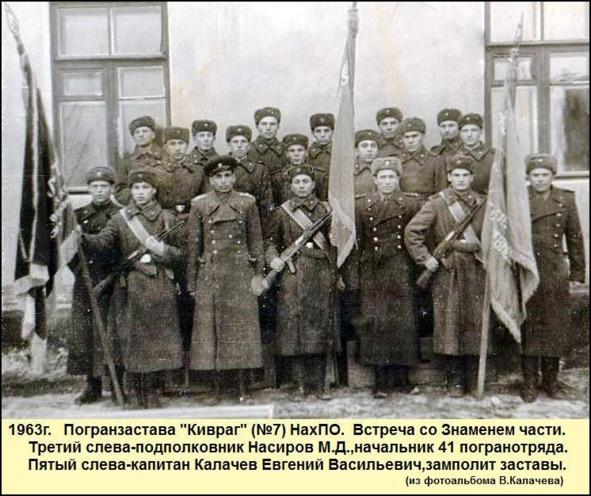 Мой отец – Калачев Евгений Васильевич – участник Великой Отечественной войны, ветеран Нахичеванского пограничного отряда, ушёл в вечный дозор в 2000 году. Поэтому воспоминания о той пограничной заставе «Кивраг», на которой он служил, и которая в период его службы в отряде именовалась под №7, попробую изложить я, его сын Виталий, с дополнениями от моего старшего брата – Вячеслава.