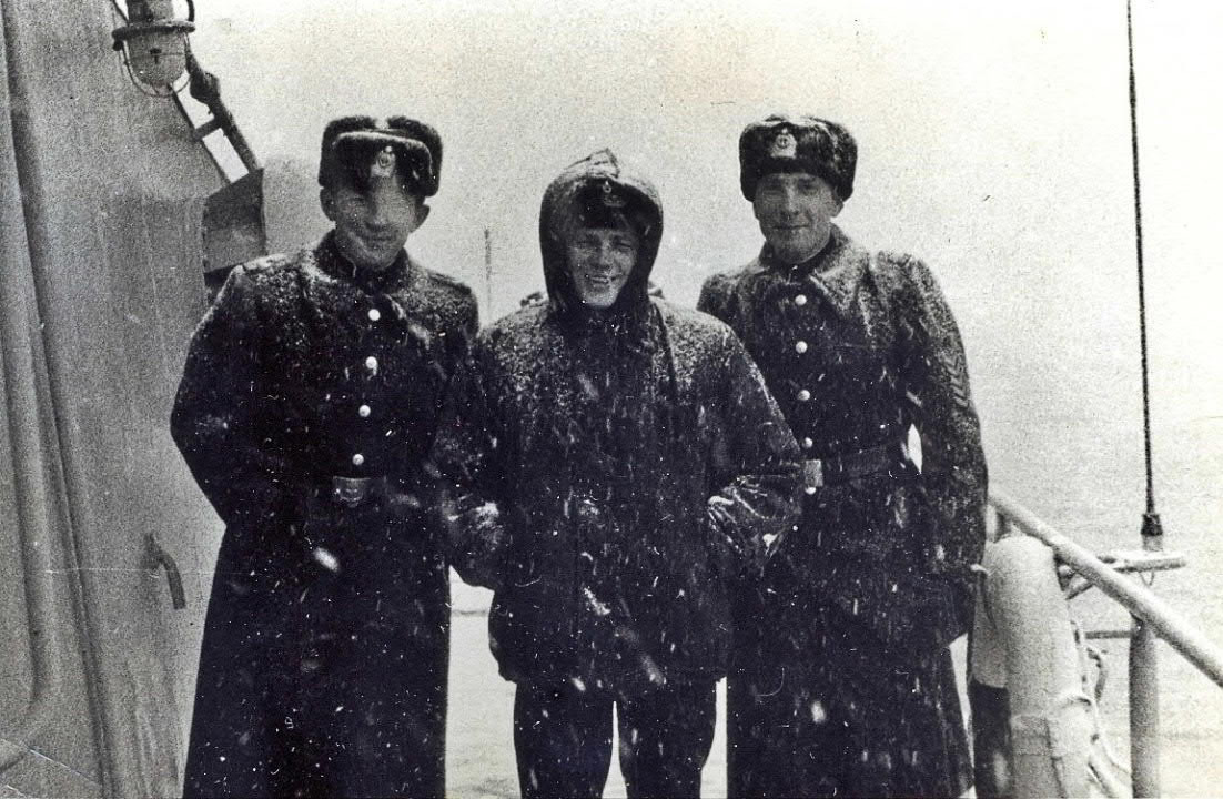 Или устраивали пробежку по верхней палубе вокруг надстроек корабля и занимались силовой гимнастикой на турнике, который был установлен на левом шкафуте. А еще группа наших самых активных товарищей, помню, что это были Вадим Коптев и Лев Хорычев, при поддержке замполита корабля гвардии капитана 3 ранга Барботько организовали регулярные вечерние передачи по корабельной трансляции на темы текущего дня.
