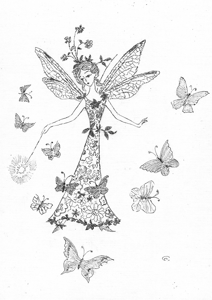 Даша оглянулась и увидела маленькую девочку-фею с крыльями бабочки в темном бальном платье.