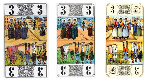 У гадателей наиболее популярен вариант, автором которого является Э. Жанен-Нальте и М. Гарриве, фирма Гримо. Но есть несколько колод со схожим дизайном – французская компания Heron (колода «Jeu de Tarot»), Ducale и Grimaud, которые объединены в группу France Cartes и ещё фабрикa Furnier (Испания) выпускают эти колоды карт.