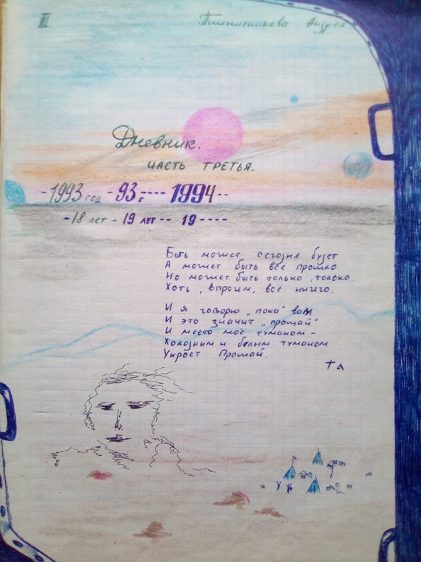 Титульная страница одной из моих дневниковых тетрадей с отрывком стихотворения