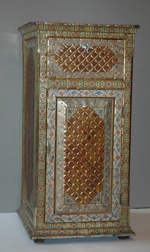 Ил. 10. Тумба. До 1902 года, Невьянск. Дерево, жесть, олово, хромолитография, «мороз» по жести (один из экспонатов выставки, ныне – в ОНИ ГРМ).