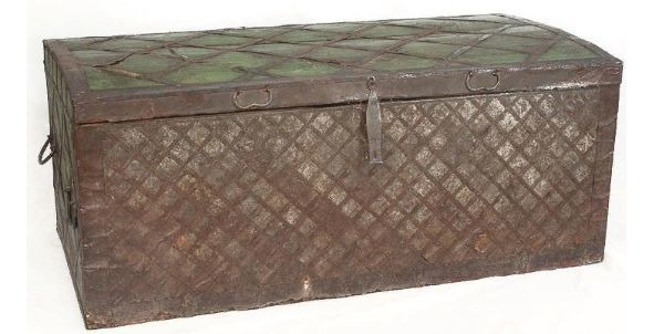 Сундук. Конец XIX – начало XX века, Сибирь. Дерево, железо, жесть, окраска, литье (частное собрание).