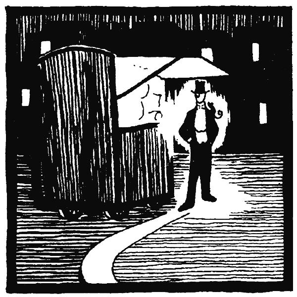 Последний отрывок, который я хочу прокомментировать, – это совершенно простой и прямолинейный диалог. Лира бежит от миссис Колтер и останавливается у кофейного киоска, где привлекает к себе внимание мужчины, изображенного здесь на иллюстрации.