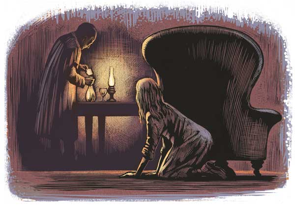 Оба на мгновение умолкли; девочка корчилась от боли и гримасничала, чтобы не закричать во весь голос, а дядя смотрел на нее сверху, нахмурясь, как грозовая туча.