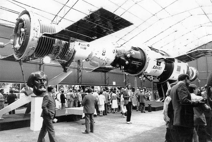 Полномасштабный макет орбитального комплекса «Салют-Союз-Прогресс» привлекал внимание всех без исключения посетителей