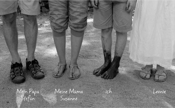 Leise, damit ich Leonie nicht wecke, schlüpfe ich unter meinem Moskitonetz hervor, ziehe mein T-Shirt und eine kurze Hose an und renne zum Haus der Bäumlers. Die Haustür steht bereits offen und durch die Fliegengittertür komme ich direkt in den Flur. Ich bleibe für einen Moment stehen. In der Küche höre ich Jakob und Kerstin diskutieren. „Nein, ich gehe heute nicht in die Schule!“, ruft Jakob.