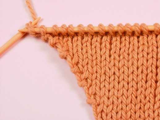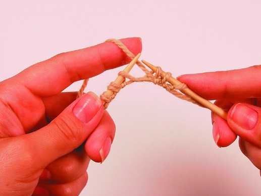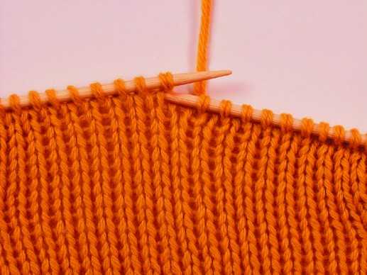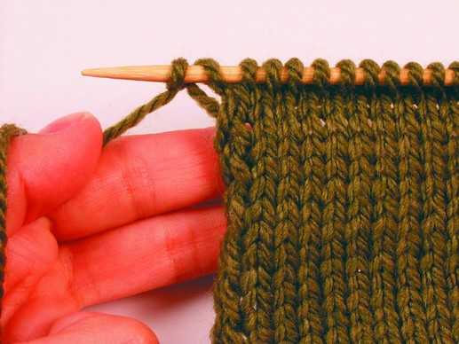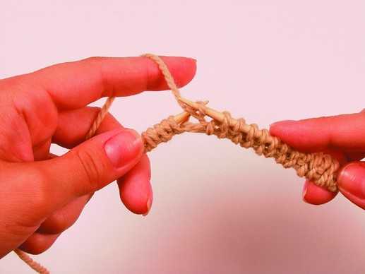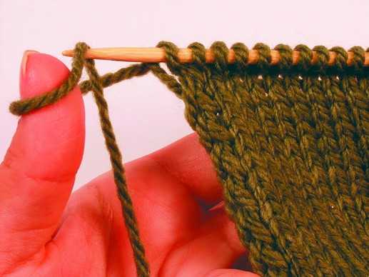 Довязав до места, где будет выполняться прибавление петель, правую спицу введите в петлю предыдущего ряда.