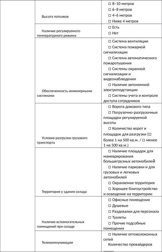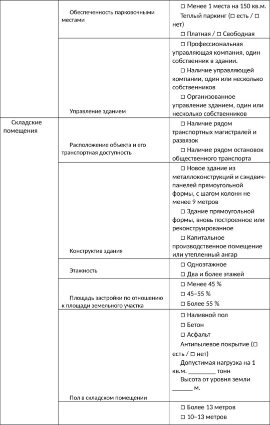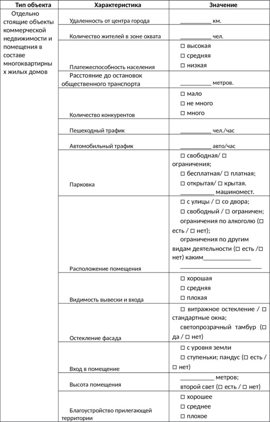 Из первой главы мы поняли, что арендаторы руководствуются большим количеством критериев и характеристик при выборе объекта. При этом для разных сфер бизнеса разный набор оцениваемых характеристик и степень их важности.