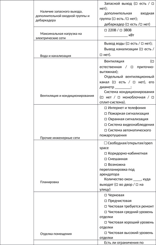 Теперь, когда у вас есть понимание, чем руководствуются арендаторы при выборе коммерческого помещения, заполните таблицу с характеристиками по вашему объекту.