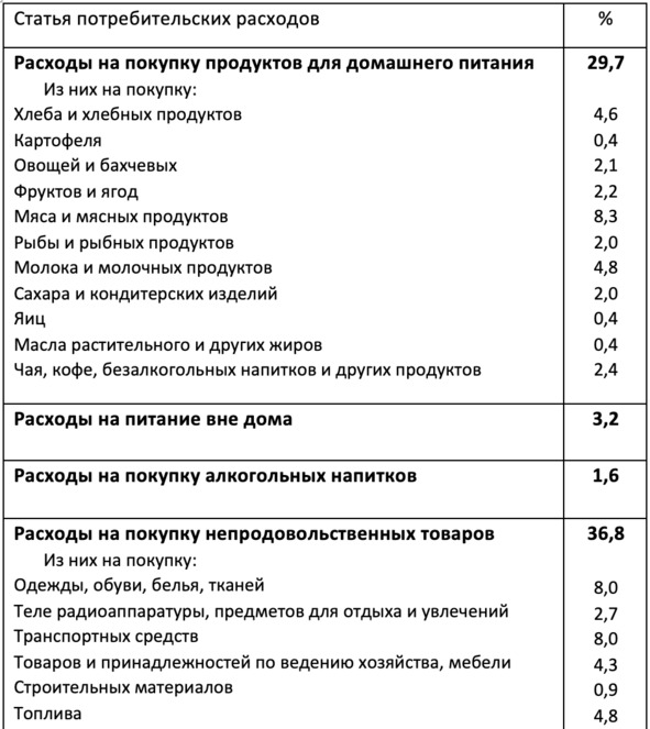 Структура потребительских расходов домашних хозяйств за 2019 год