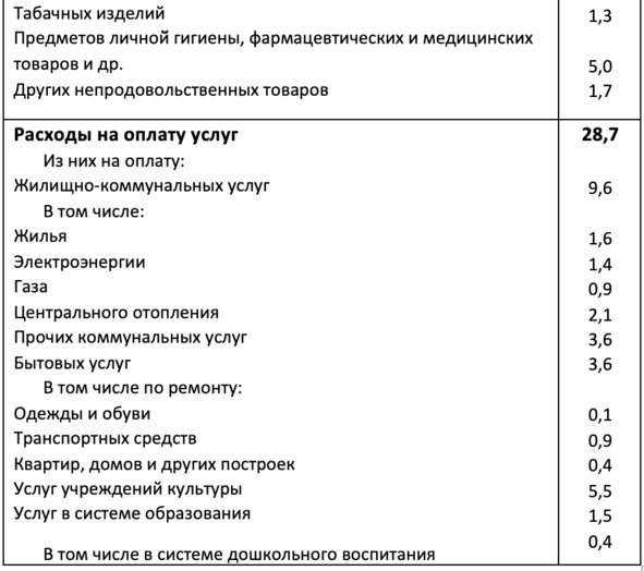 (по материалам выборочного обследования бюджетов домашних хозяйств, в процентах)1