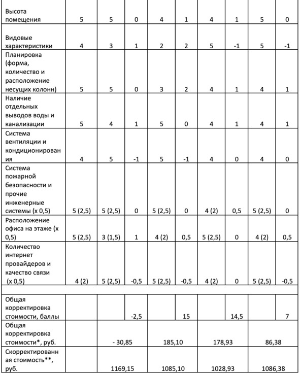 ** – Скорректированная стоимость объектов сравнения имеет расчетное значение. Она не является справедливой рыночной ценой сравниваемых объектов.