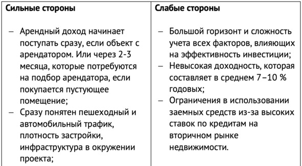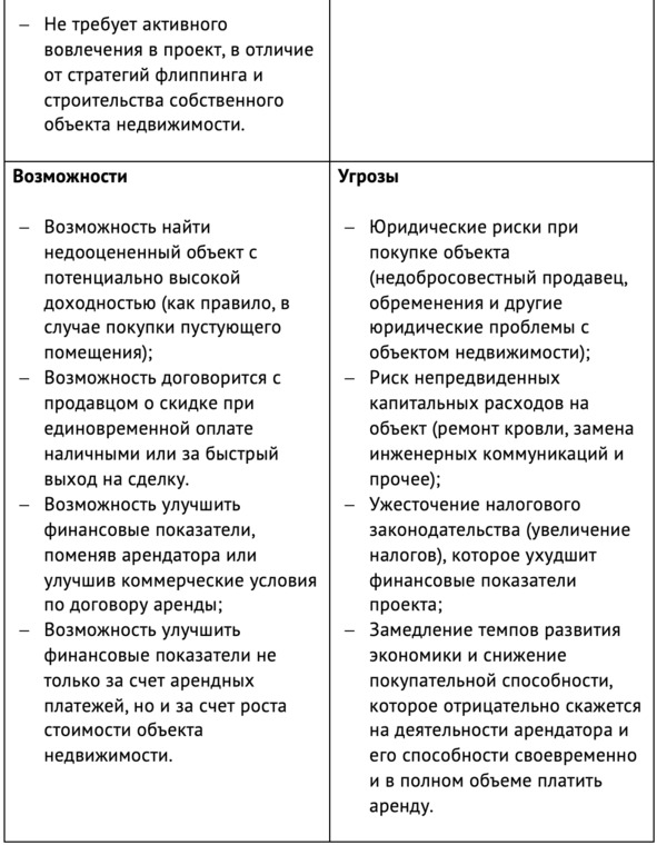 SWOT-анализ инвестиционной стратегии покупки готового объекта с целью долгосрочной сдачи объекта в аренду