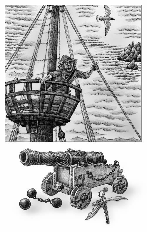 Мы подкрепились кушаньями и напитками, которые нашли в изобилии, и наконец опять поднялись на палубу. Но здесь мы все время дрожали от ужасного вида трупов. Мы решили избавиться от них и выбросить их за борт. Но как страшно нам стало, когда оказалось, что ни один труп нельзя сдвинуть с места. Они лежали на полу как заколдованные, и чтобы удалить их, пришлось бы вынимать пол палубы, а для этого у нас не было инструментов. Капитана тоже нельзя было оторвать от мачты; мы даже не могли вырвать саблю из его окоченевшей руки.