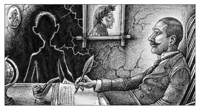 Самое странное, однако ж, происходит в той сумеречной стране, где встречаются дух и материя. Помню, однажды в Риме мы с женой шли по Пинчио. Жена раньше никогда не бывала здесь и даже не читала описания Пинчио, так как это было в первый день нашего приезда в Рим. Неожиданно она как-то рассеянно выговорила: «Здесь есть памятник Данте». И несколько секунд спустя мы увидали этот памятник, до того скрытый кустами.