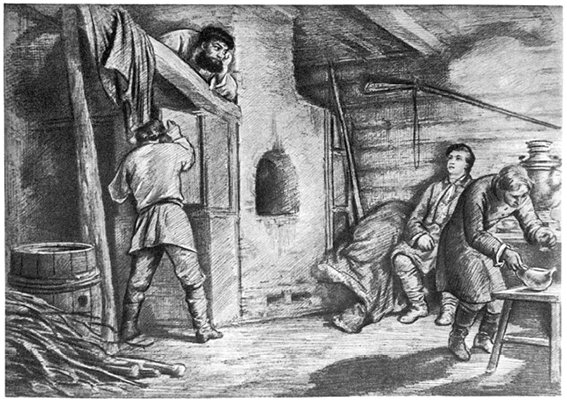 – Да что наши! – отвечал хозяин, продолжая иносказательный разговор. – Стали было к вечерне звонить, да попадья не велит: поп в гостях, черти на погосте. – «Молчи, дядя, – возразил мой бродяга, – будет дождик, будут и грибки; а будут грибки, будет и кузов. А теперь (тут он мигнул опять) заткни топор за спину: лесничий ходит. Ваше благородие! за ваше здоровье!» – При сих словах он взял стакан, перекрестился и выпил одним духом. Потом поклонился мне, и воротился на полати.