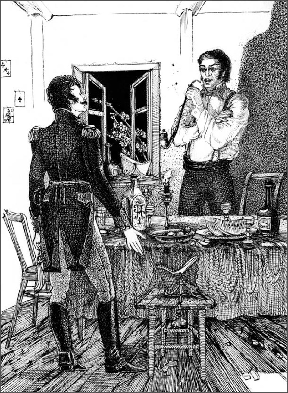 Мы не сомневались в последствиях и полагали нового товарища уже убитым. Офицер вышел вон, сказав, что за обиду готов отвечать, как будет угодно господину банкомету. Игра продолжалась еще несколько минут; но, чувствуя, что хозяину было не до игры, мы отстали один за другим и разбрелись по квартирам, толкуя о скорой ваканции.