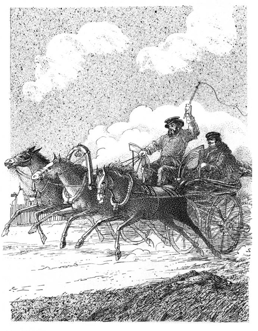Прошел еще день, и гусар совсем оправился. Он был чрезвычайно весел, без умолку шутил то с Дунею, то с смотрителем; насвистывал песни, разговаривал с проезжими, вписывал их подорожные в почтовую книгу и так полюбился доброму смотрителю, что на третье утро жаль было ему расстаться с любезным своим постояльцем. День был воскресный: Дуня собиралась к обедне. Гусару подали кибитку. Он простился с смотрителем, щедро наградив его за постой и угощение; простился и с Дунею и вызвался довезти ее до церкви, которая находилась на краю деревни. Дуня стояла в недоумении… «Чего же ты боишься, – сказал ей отец, – ведь его высокоблагородие не волк и тебя не съест: прокатись-ка до церкви». Дуня села в кибитку подле гусара, слуга вскочил на облучок, ямщик свистнул, и лошади поскакали.
