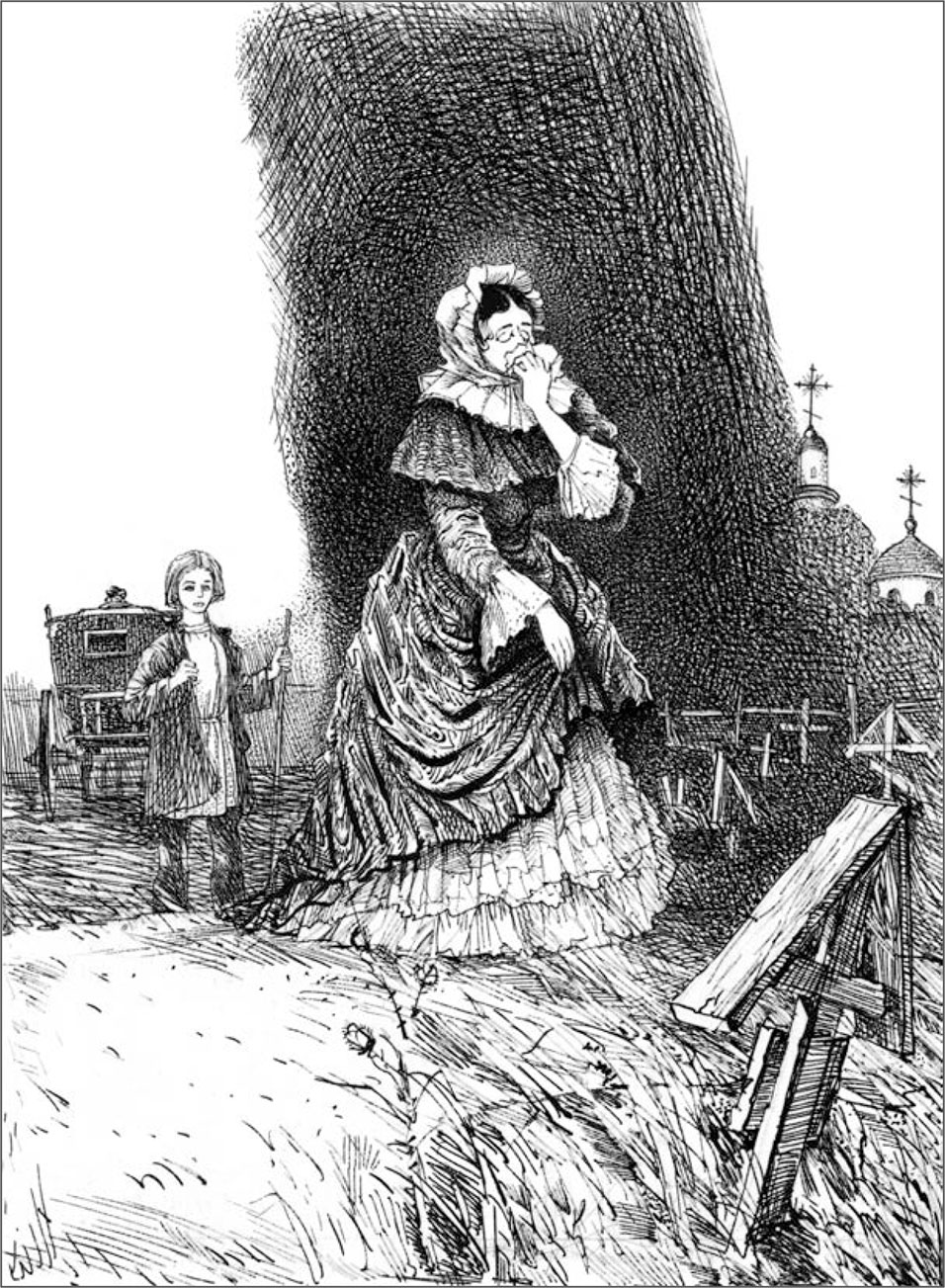 Мы пришли на кладбище, голое место, ничем не огражденное, усеянное деревянными крестами, не осененными ни единым деревцем. Отроду не видал я такого печального кладбища.