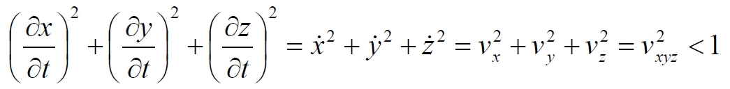 Уравнение означает, что скорость события всегда меньше скорости света c = 1. Графически уравнение тождественно поверхности (линии) касательных к геодезическим событий. Количество слагаемых в уравнении выбирается равным размерности пространства (не считая времени). Уравнение отражает обобщённое понятие светового конуса, то есть, и треугольника, и конуса, и сферы, и относится к геодезическим произвольной формы, к событиям, движущимся с ускорением.