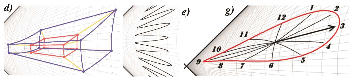 Как отмечено, диаграммы Пенроуза принципиально ничем не отличаются от традиционных, классических декартовых систем координат. Поэтому их можно использовать таким же образом для любых графических построений. Поскольку координатная сетка на диаграммах Пенроуза криволинейная, такие фигуры и графики выглядят довольно-таки экзотически – рис.11. Координатная сетка, линии погашены.