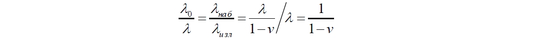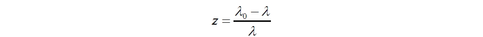 Это, очевидно, верное соотношение. Действительно, если v = 0, то длина наблюдаемой волны равна длине излучаемой. Иначе, при удалении наблюдателя от источника, длина наблюдаемой волны всегда больше длины излучаемой. Напротив, при сближении, отрицательном значении скорости, длина волны оказывается меньше излученной. Если подставить эти значения длин волн в уравнение для красного смещения, то получим: